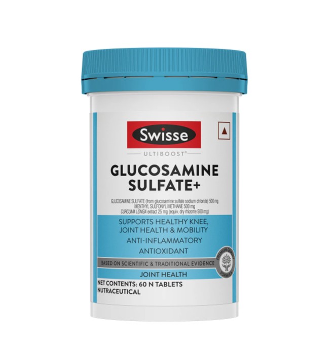 Swisse Glucosamine Sulfate+ is a comprehensive blend of premium quality ingredients from western science & traditional Indian medicine. These ingredients are carefully selected for their anti-inflammatory properties and their ability to support joint mobility.